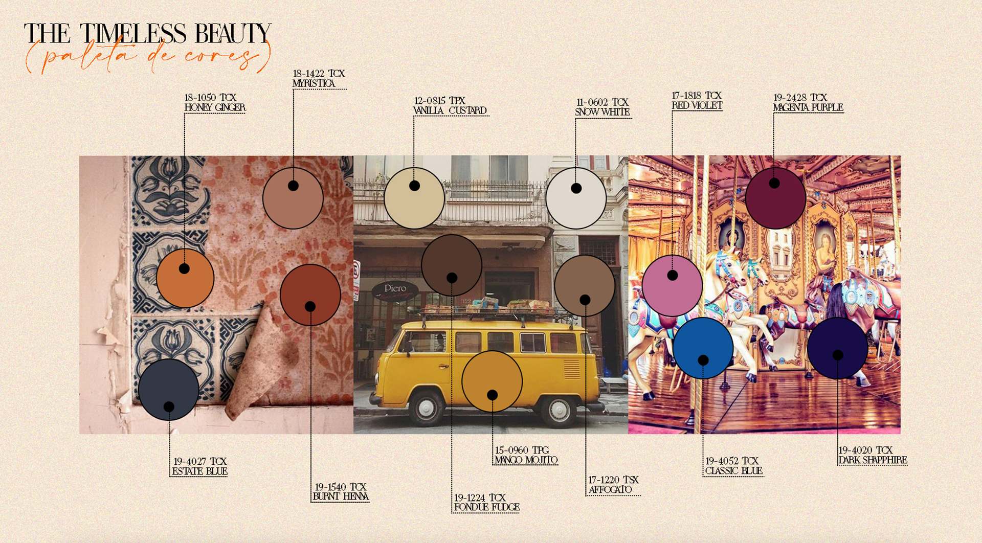 Identidade visual desenvolvida para o projeto de coleção de moda "Timeless Beauty".